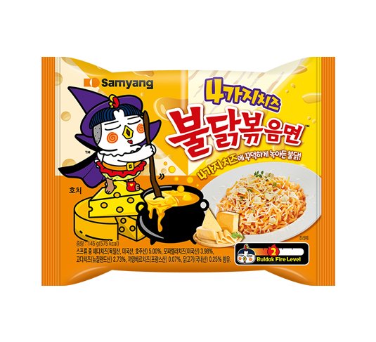 Buldak melted in four kinds of cheese: mozzarella, cheddar, camembert, and gouda